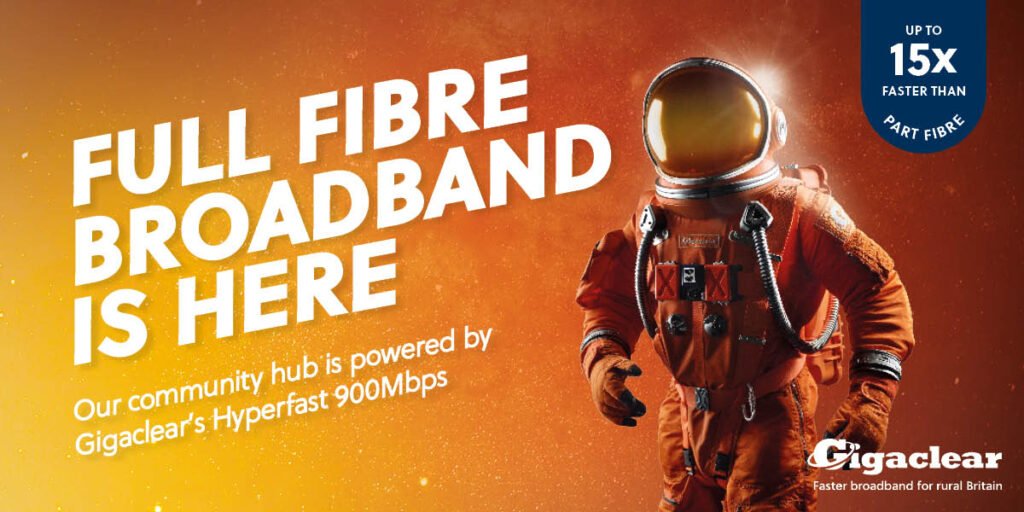 - Superfast broadband with Wi-Fi connection (Provided by Gigaclear’s Community Hub Scheme)